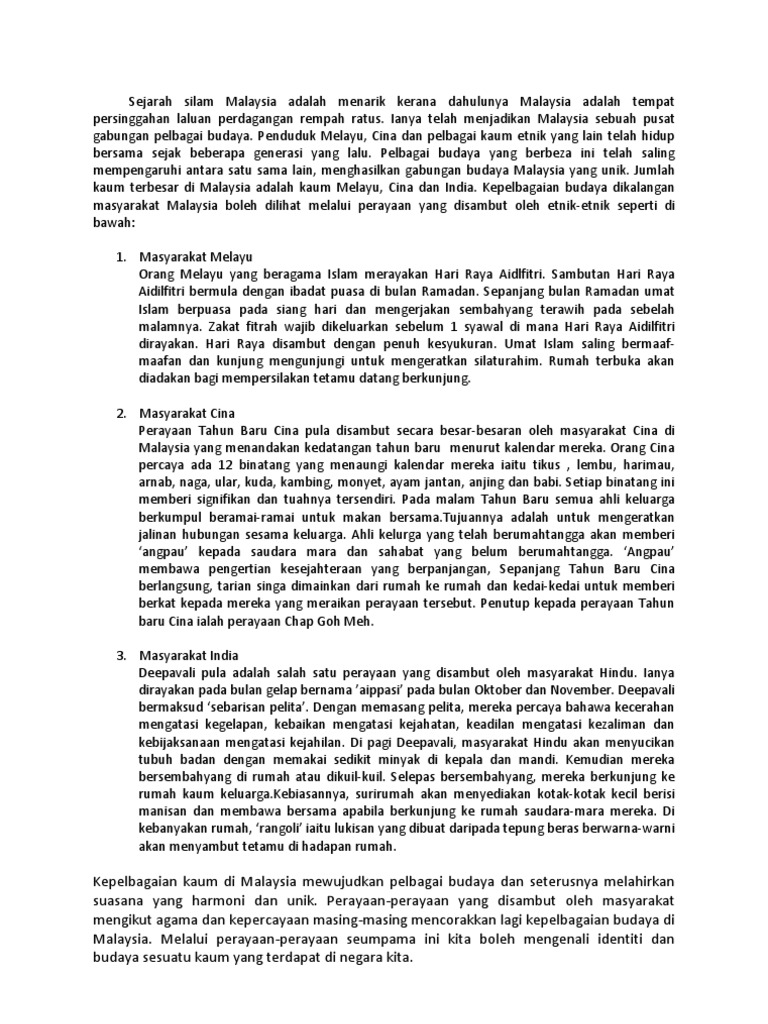 Doc Budaya Membawa Pelbagai Implikasi Lynn Zack Academia Edu from 0.academia-photos.com • dalam sejarah malaysia, kehadiran kaum cina dalam pusat perdagangan bermula di negeri melaka yang diikuti di kuala lumpur dan pulau pinang. Masyarakat di malaysia menpunyai bahasa yang berbeza. Download lagu kepelbagaian kaum di malaysia mp3 dapat kamu download secara gratis di metrolagu. Pihak kerajaan mengadakan pertandingan pakaian tradisional. Di sabah tertumpu di kawasan ulu keunikan seni budaya di malaysia seperti makyung, tarian singa, tarian kathak, tarian bhangra, wayang kulit, batik serta songket perlu dipertahan. Is proud to present:kepelbagaian kaum di malaysiaapa maksud kaum ?kaum bermaksud golongan orang sebagai sebahagian daripada satu bangsa yang besar; Nasi lemak adalah contoh makanan orang melayu yg dapat memupuk perpaduan kaum di malaysia dan ia patut dijadikan makanan kebangsaan malaysia. Selain itu, kepelbagaian agama di malaysia juga perlu diberi keutamaan demi mengekalkan kukuhan perpaduan antara kaum dengan mengamalkan semangat perkongsian, saling menghormati dan menanam sikap toleransi sesama rakyat malaysia.