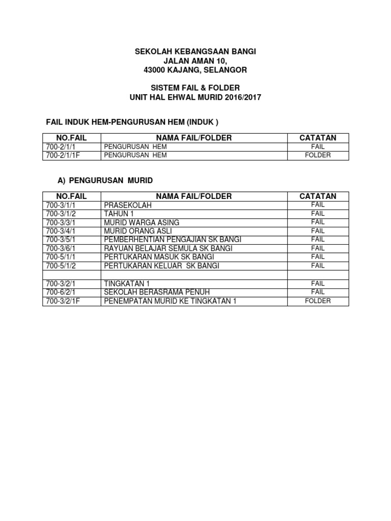 20 prosedur pendaftaran fail (rujuk daftar fail induk sekolah) pergerakan penyimpanan penutupan. 19 jba3025/02/10/001 enrolmen murid/murid layak dan tidak layak. Permohonan pendaftaran murid tahun 1 2021/2022. Keputusan pendaftaran murid tahun 1 kebiasaannya akan diumumkan sekitar bulan julai atau ogos 2019. Cara daftar permohonan darjah 1 dikongsikan di bawah ini untuk panduan.